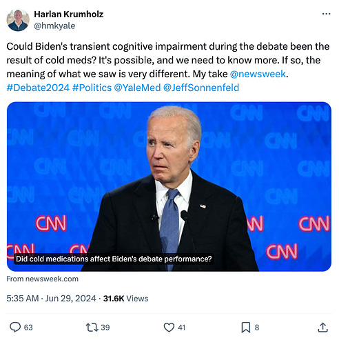Source: Some doctors & professors claim Biden’s debate performance was due to stuttering or cold medication.