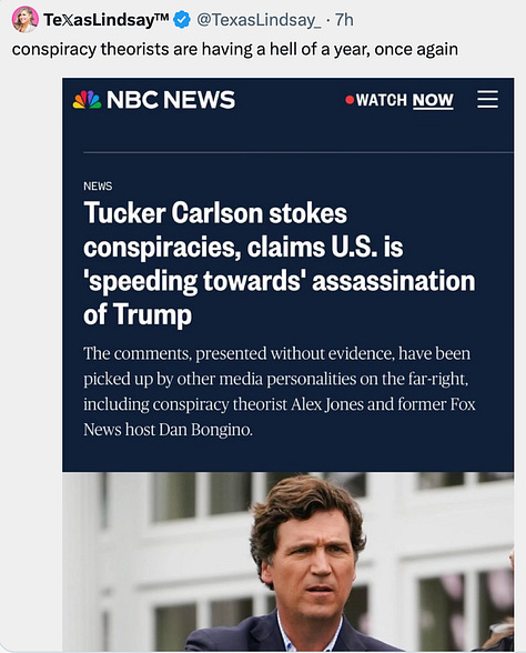 There had been an assassination attempt on the life of President and candidate Donald Trump. I stayed up until 6:00 AM, going back and forth with Justine Inserlake and posting/crossposting breaking news on “X”. Suffice to say, alternative media ran circles around corporate media, while the same corporate media seemed bound and determined to validate the thesis that it remains “Mockingbird” controlled by the CIA/Blob.