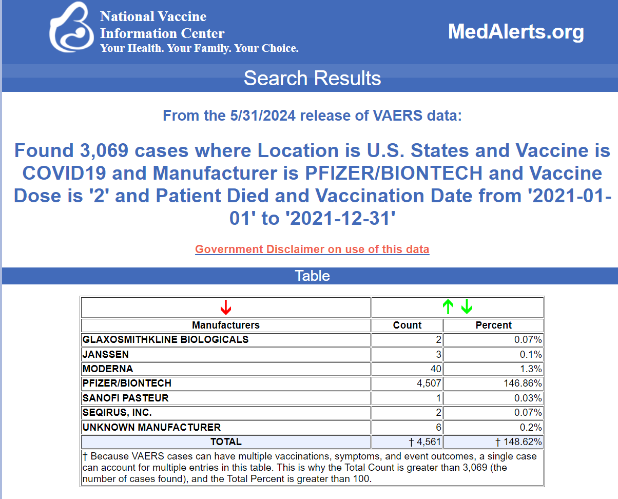 We know Pfizer isn’t safe either because 85% of all deaths in the ENTIRE HISTORY OF VAERS are from the COVID vaccines