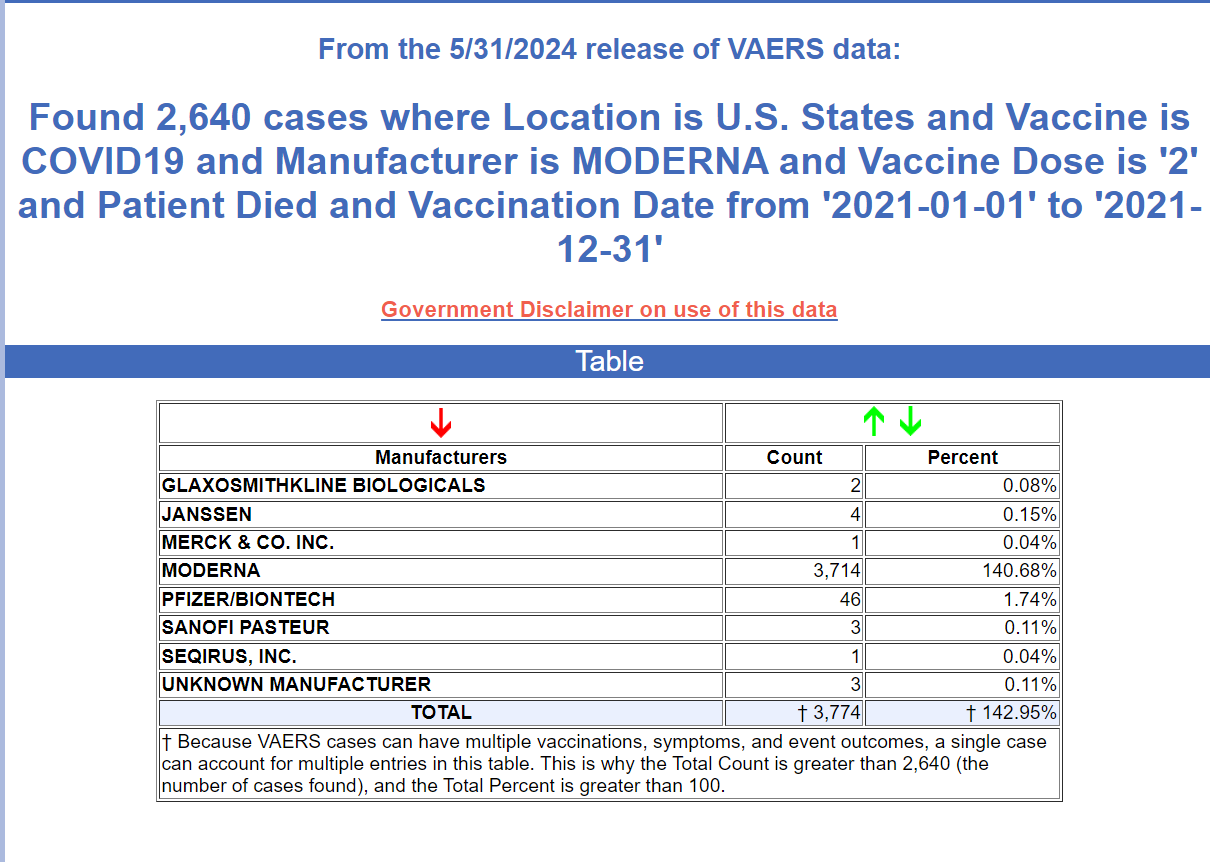 But first, I want to show you that the VAERS data clearly shows that the Moderna vaccine causes a disproportionately higher number of deaths than Pfizer.
