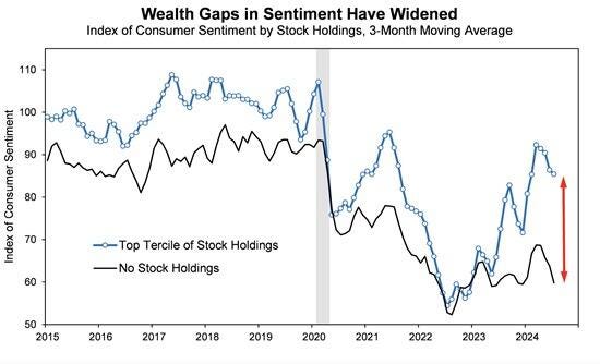 While the wealthy cling to the self-serving narcissistic view that since we’re doing fine, everyone’s doing fine, the reality is the bottom 80% are awakening to the reality that they’re not doing fine, a divide that will only widen as recession tightens its grip on the throats of the bottom 80%: