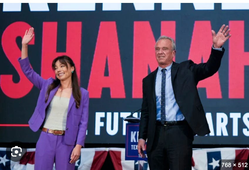 I also want to address Nicole Shanahan. A Trump/RFK Jr alliance is deeply benefitted by her persona and achievements, in ways that no one has fully recognized, in my view. Sexist and even classist filters — former “trophy wife” of a chief Tech bro, billionairess — have obscured the reality, that she is a leader of significant accomplishments. The fact that she is young and conventionally attractive has also, predictably, been used against her, to obscure her gravitas.