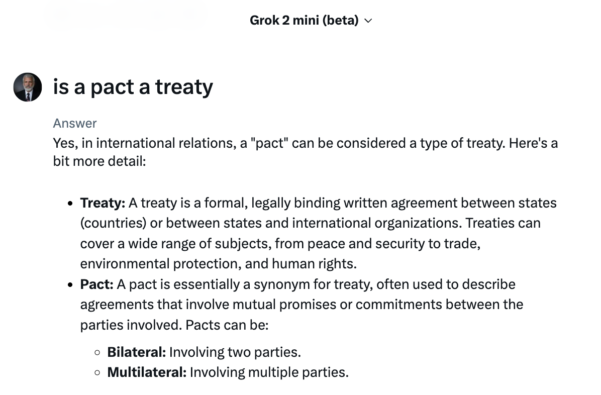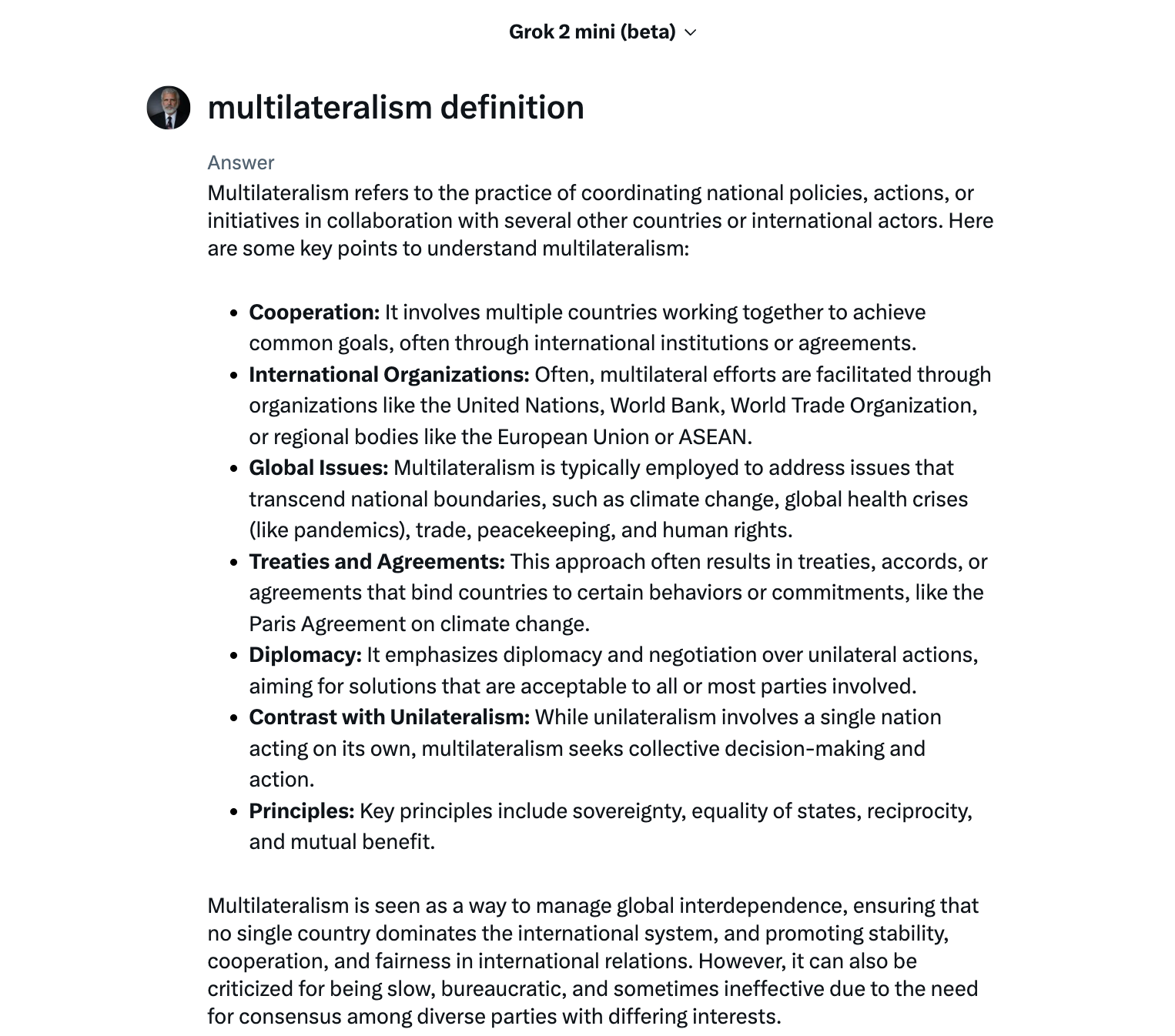 In order to understand some of the treaty’s text, I have included Grok’s definition of multilateralism: