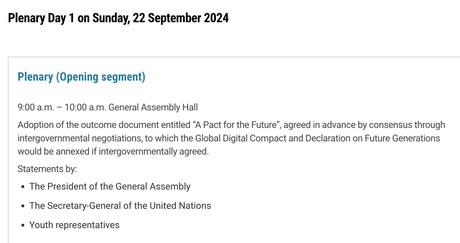 The outrage here is that this document and its annexes are being decided by “consensus,” prior to the UN Summit for the Future meeting held in NY at the end of September.