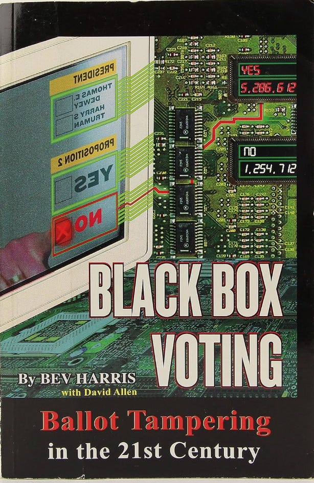 As most people know, the states run the elections, but this is further broken down into counties and precincts. This vast diversity was sold as a protection, and it would be – assuming virtue. But in fact, that protection has been weaponized against voters. All the machines can be programmed by the local IT guy, a visiting tech from the machine company or remotely, and that has been proven again and again. Every single election is therefore risky. Bev Harris’s Black Box Voting, Ballot-tampering in the 21st Century, makes it clear that none of the machines operate with integrity. They can all be programmed to “glitch” and fail. Harris lists a thousand such fails and says she was only limited to those because the publisher said “it is too depressing”.