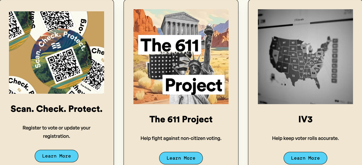 Engelbrecht is working with hundreds of thousands of voters now, in precincts all across the country, at the ground level. She and her team have developed tools for citizens to use to check the voter rolls. She has 35,000 volunteers working on just one of the apps below, IV3, and at any one time, 7,000 people are on line helping voters.