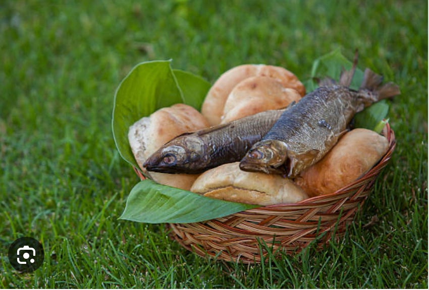 Two fish, five loaves.