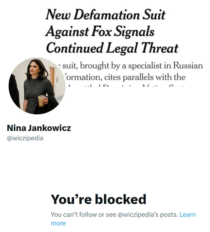 Interestingly the bill’s relaunch comes a week after failed US Disinformation Czar Nina Jankowicz visited Canberra. Did she meet with any politicians and advise them on setting up Australia’s own Ministry of Truth? I’d ask her but she blocked me last week, despite us never having interacted.