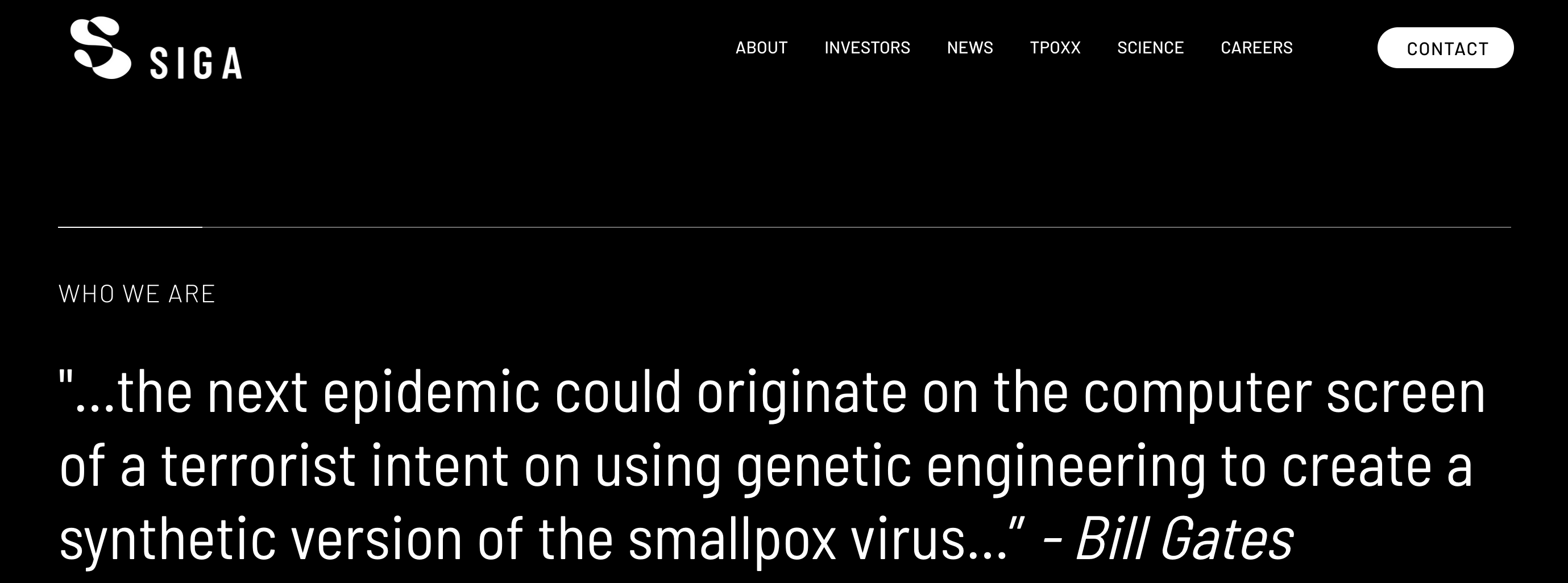 It turns out— at the time of video release— Varma was working for SIGA technologies. What is this company?