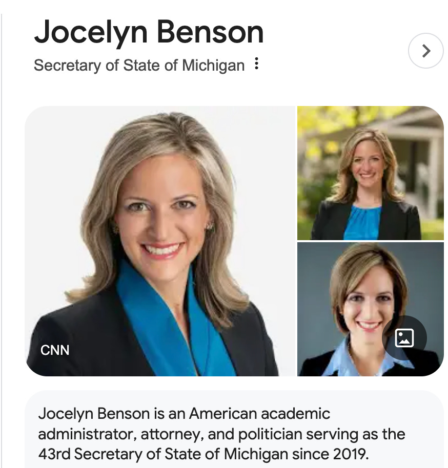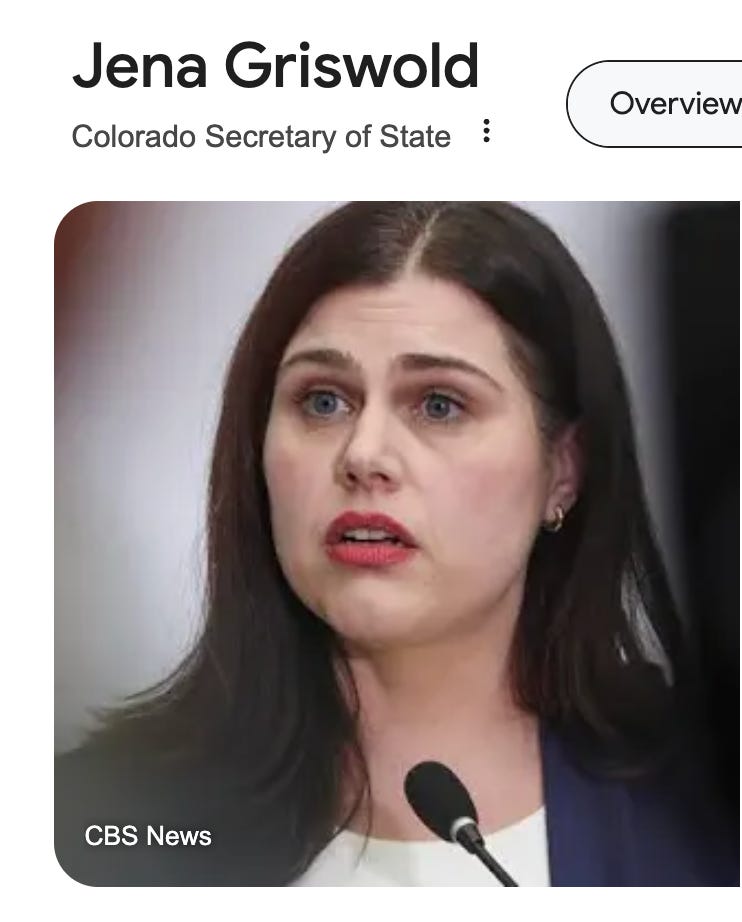 If you run through the various states where theft has been reported, as I have, including Michigan, Colorado, Arizona, you will run into a certain type of woman. There is a name for these types, but I call them the Long Bobs, or Lobs, which is a haircut that stylists have decided suits executive women who are of childbearing age. The haircut also signifies their belonging, their integration into the mainstream. But it is a fake integration. Time after time after time, these Soros funded, WEF trained women have used vicious tactics to silence operatives, pitilessly jailing people. Last month, Jenna Griswold, in Colorado put Tina Peters, a 69 year old grandmother with an exemplary record of community service, in jail for ten years. I think they are chosen because they look like teachers or principals of an elementary school. Harmless. They are anything but. In every single state, they have been carefully placed to turn back challenges. This is crude identity politics with Marxist purpose and a transparent political tactic of the hard left.