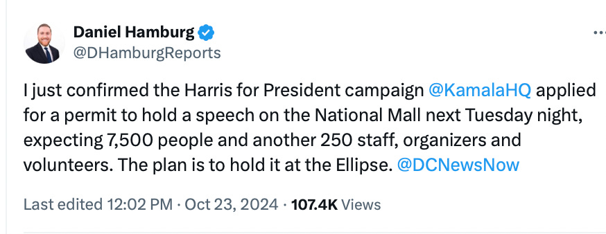 Now, Kamala Harris plans to give an “important” speech on the National Mall. It will be dressed up to look like an official speech, just like Biden’s at Gettysburg and Independence Hall.