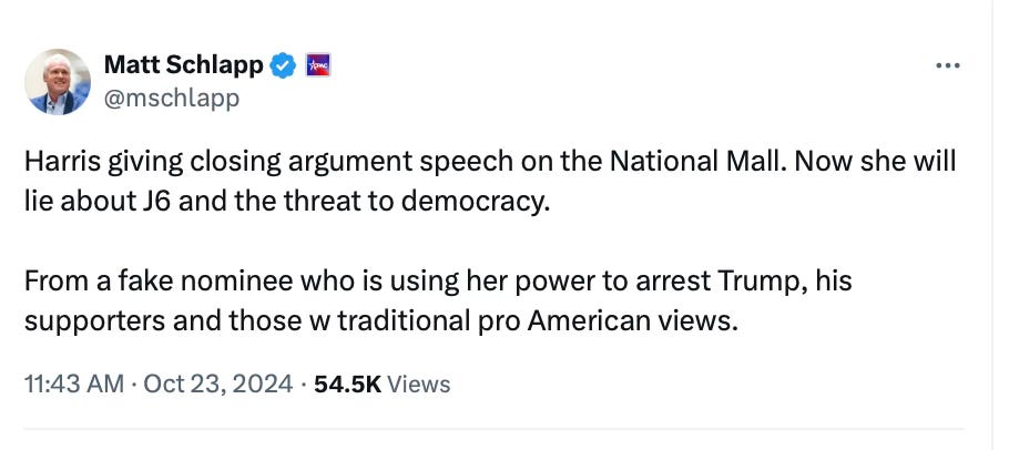A tiny alarm rang in my mind when I heard that Harris was speaking at the National Mall in DC on Tuesday. An important speech about January 6th and saving Democracy at a sacred American monument? It sounded all too familiar, didn’t it?