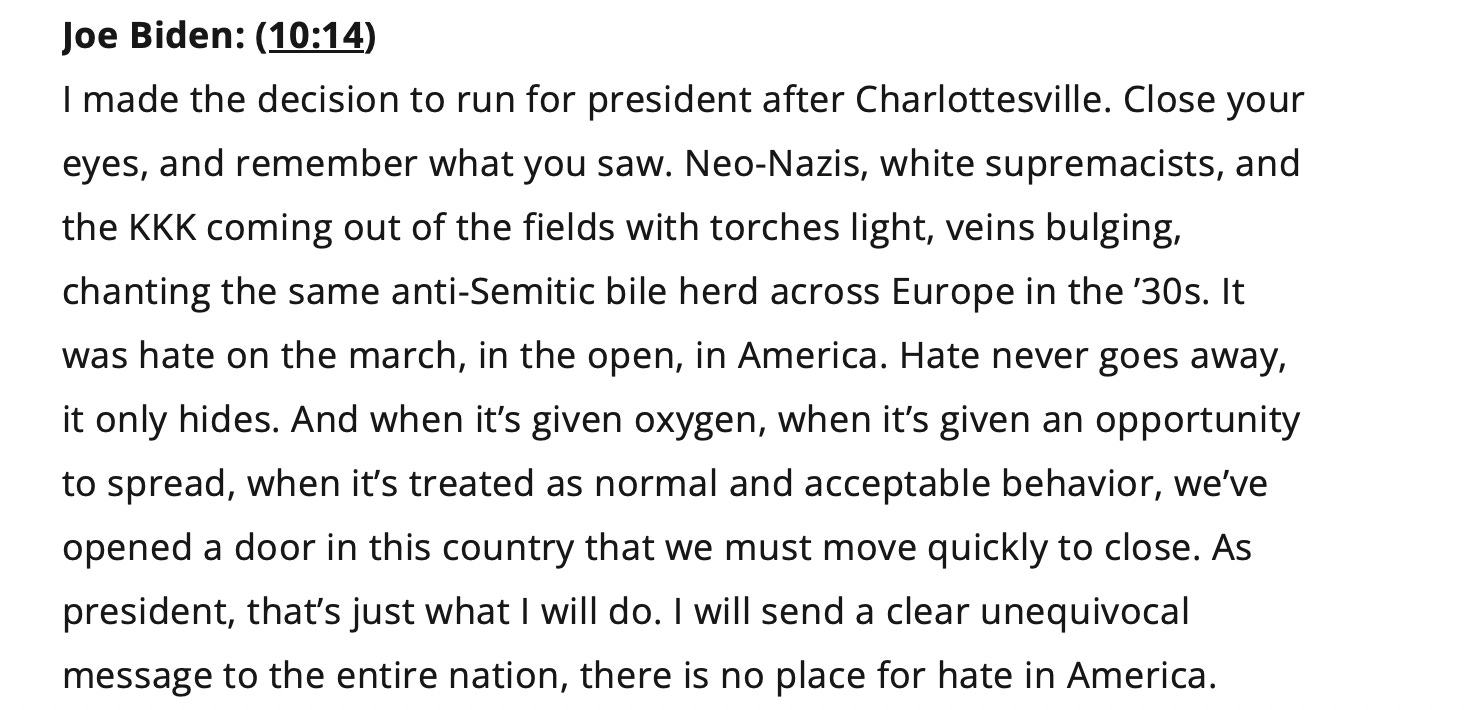 On October 6, 2020, heading into the election, Joe Biden went to Gettysburg and gave a speech about the Battle for the Soul of Our Nation.