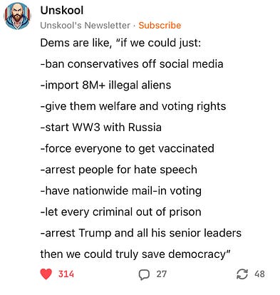 The left can no longer win on the merits of their ideas, much less their actions. They have created one catastrophe after another. The only way they can win elections is steal them. And they have developed three hundred separate, specific, methodologies to do it. In my opinion, and that of others closer to the coal face.