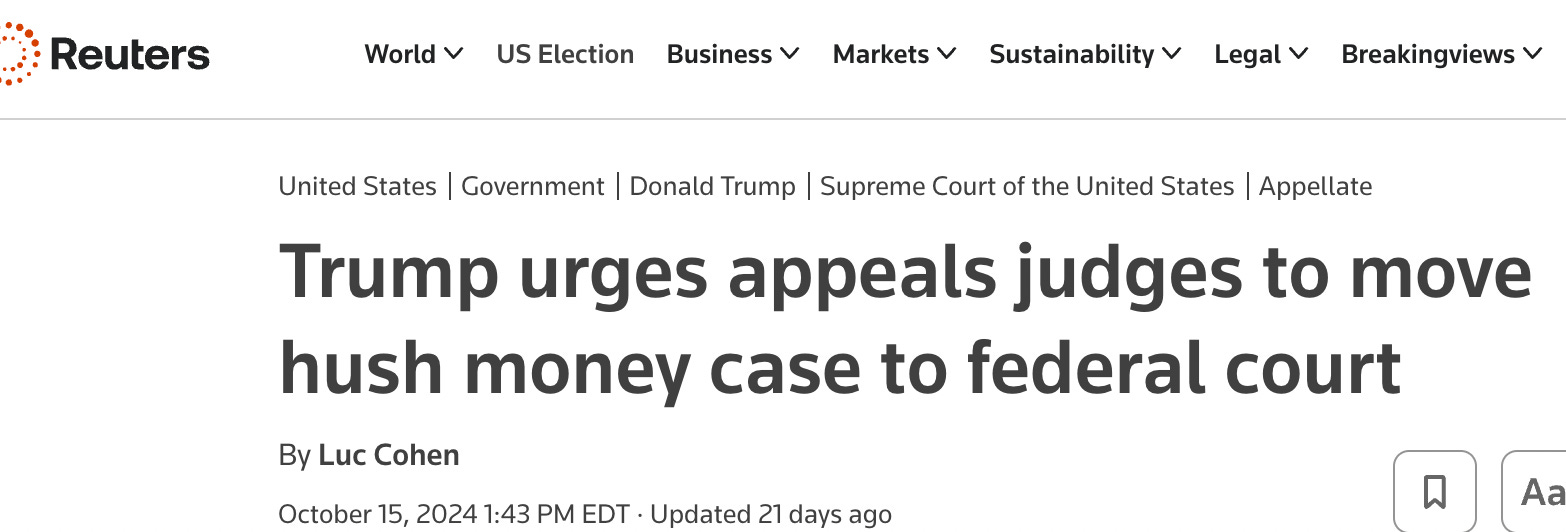 Trump has again asked that the case be moved to federal court, which would eventually allow the Supreme Court to make an emergency ruling.