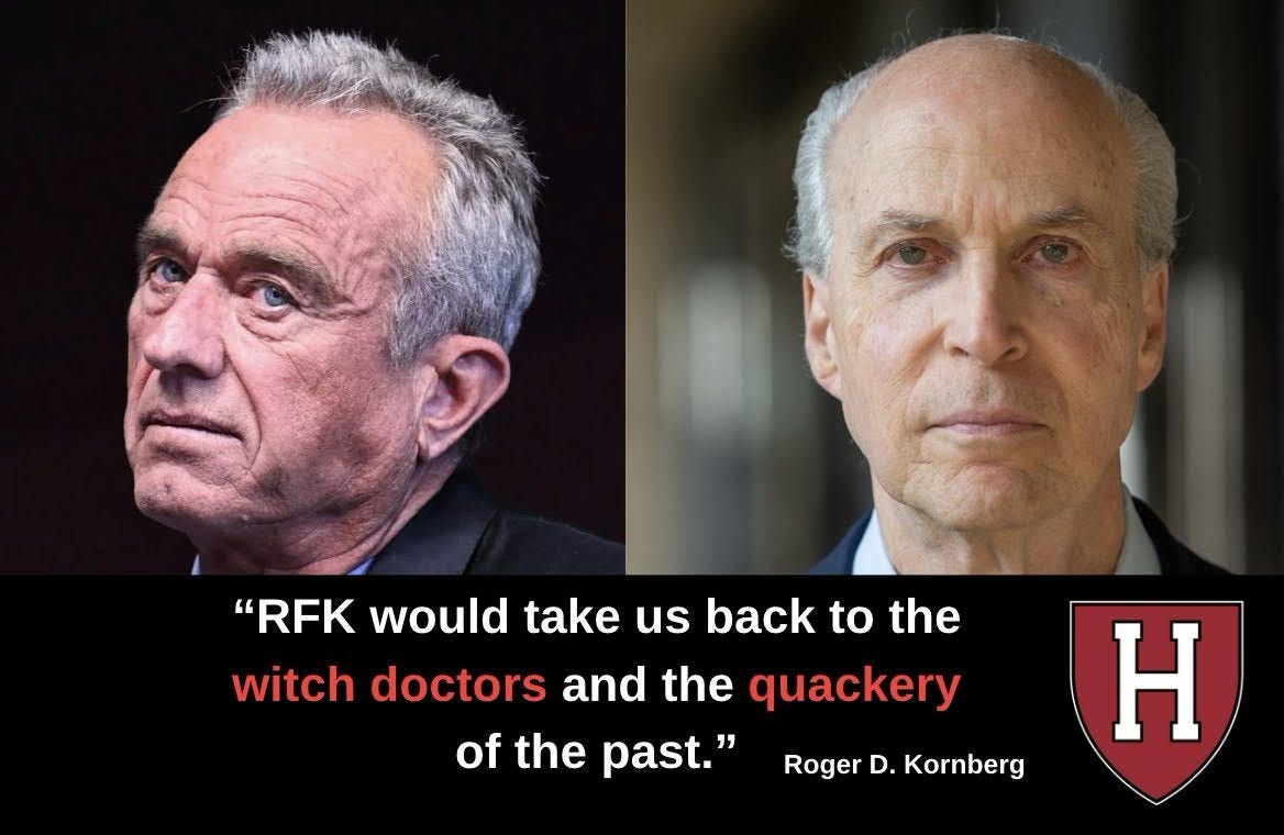 Take Roger Kornberg, for example. He stands out not only for his extensive ties to the pharmaceutical and biotech industries but also for his inflammatory rhetoric. Kornberg described RFK Jr. as a “witch doctor” engaging in “quackery” and claimed Kennedy’s approach to public health would lead to “ravishing disease.” Such comments reveal a level of hostility that goes beyond scientific critique, suggesting a bias tied to his professional and financial interests.