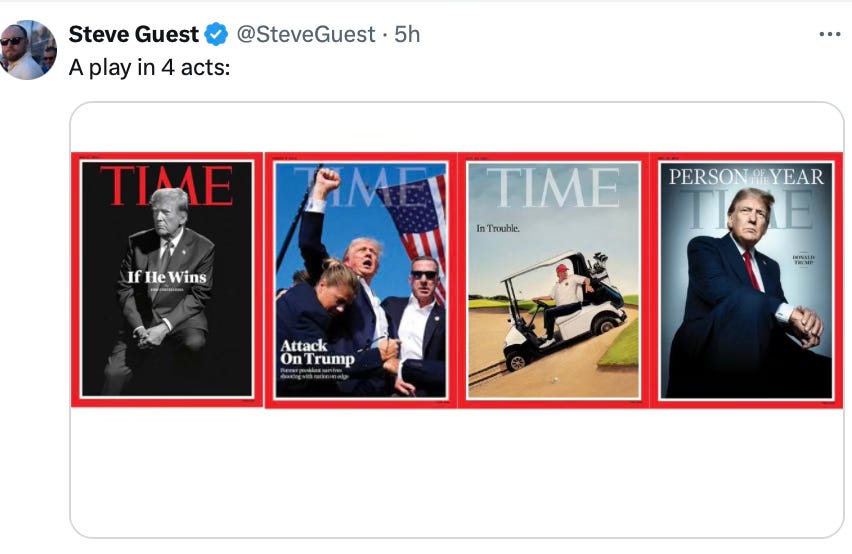 And yes, TIME magazine named Trump Man of the Year for a second time. I am working this into a longer piece, which I am writing now. What a moment. What a story.