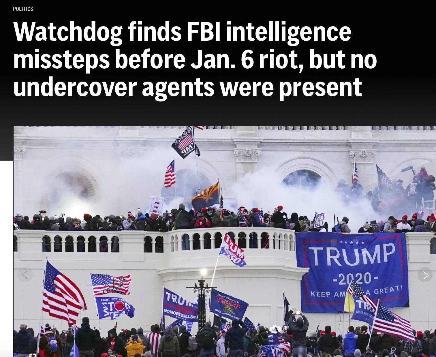 The AP does reassure its readers that “no undercover agents were present.” But that wasn’t the question. The question was what the FBI knew, when they knew it, and why the Capitol was left unprotected.