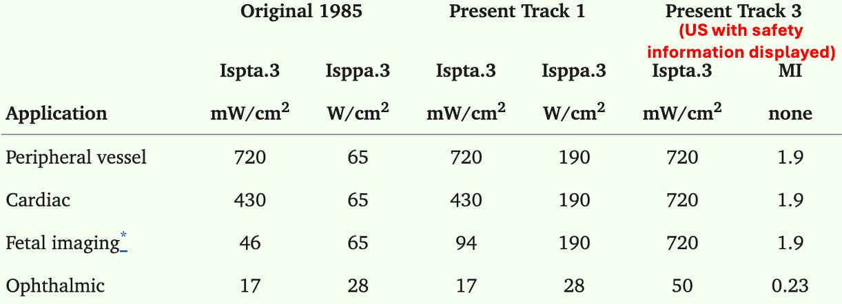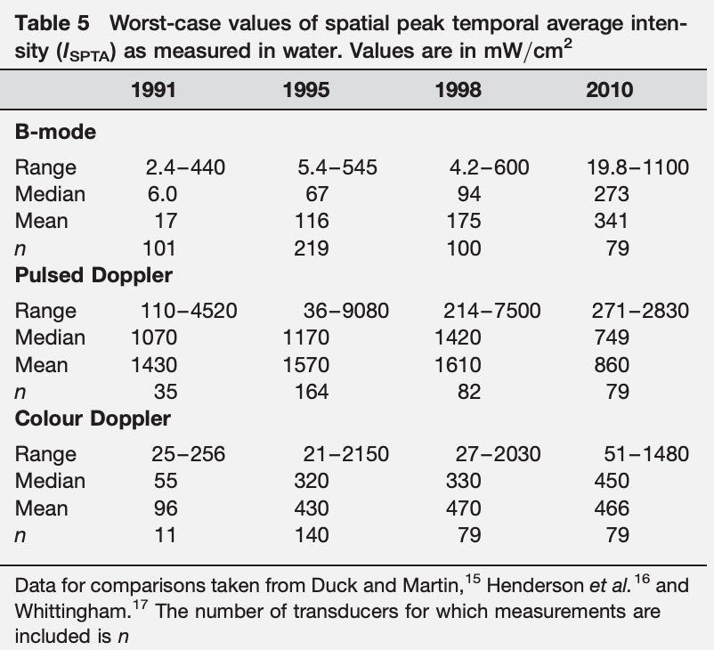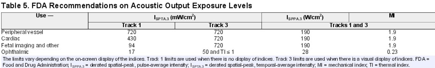 Note: in contrast, Japan for example makes the limit for diagnostic ultrasound 10 mW/cm2.