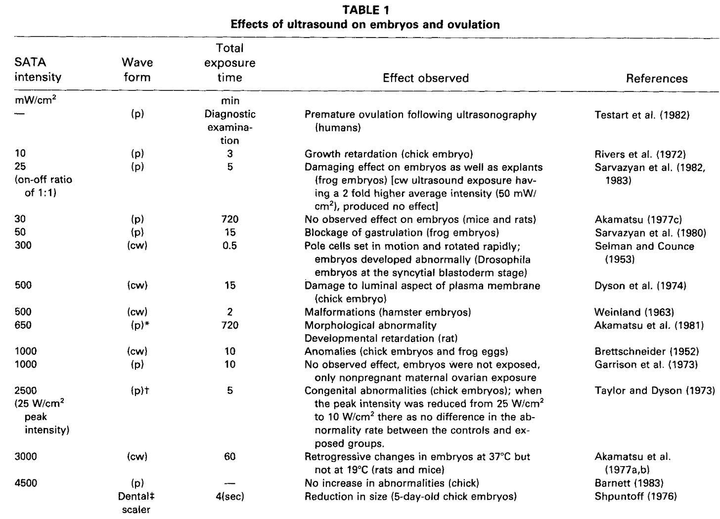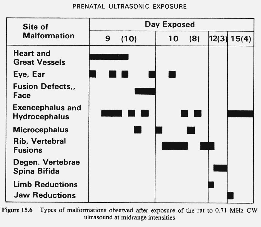 Note: numerous studies (e.g., see this 1997 review) have found rapidly dividing cells are more vulnerable to the adverse effects of ultrasound—which is concerning given that embryo cells rapidly divide.