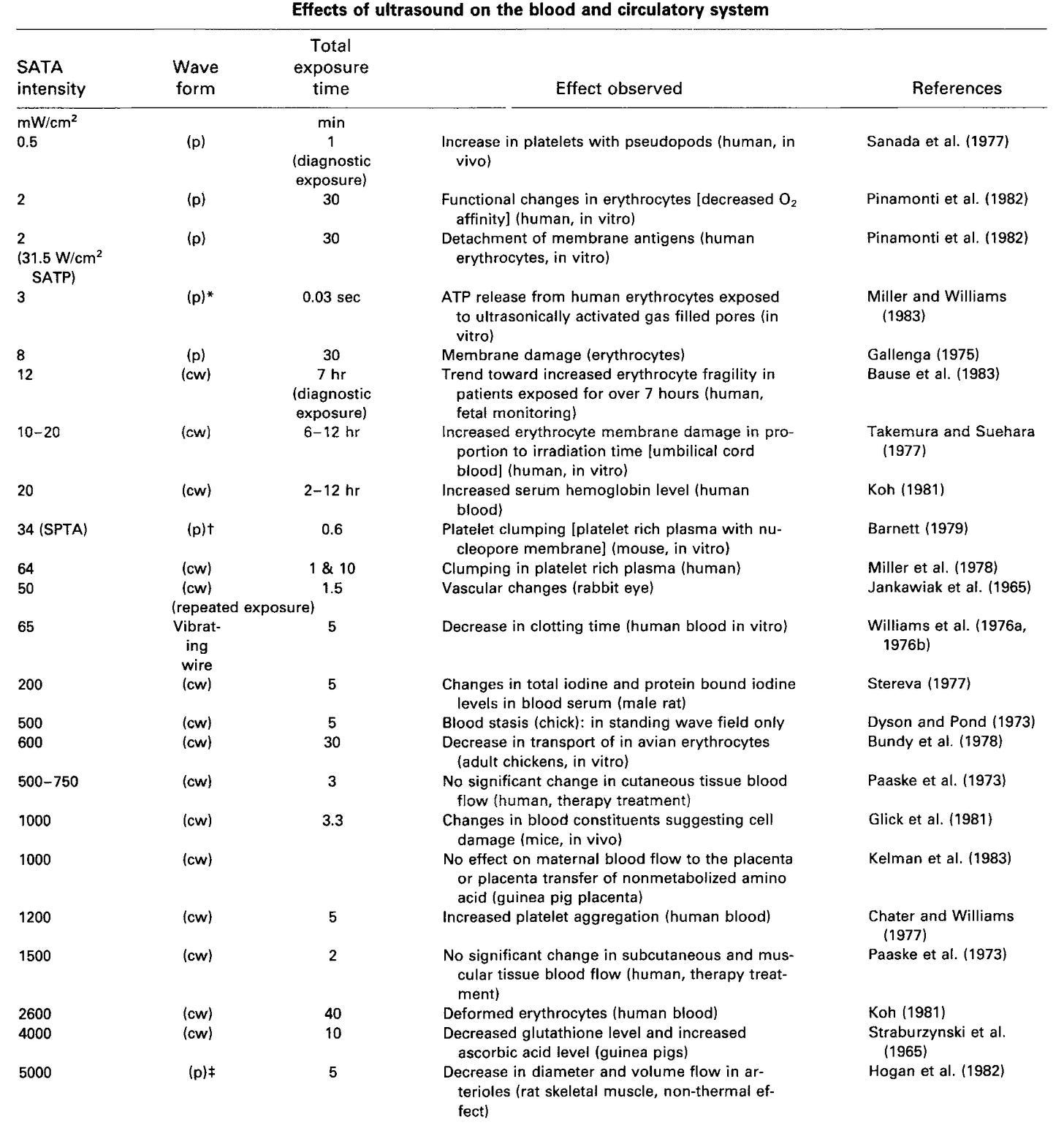 •Thrombus (clot) formation after US-induced endothelial damage was one of the earliest demonstrations of its adverse effects.