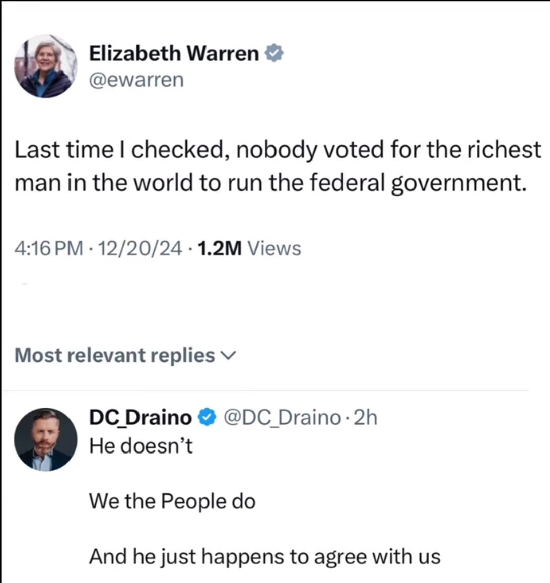 The deplorables rose up in a great wave and defeated it. Oh I know the blithering morons think it was Trump and Musk, but trust me on this, Trump and Musk are a symptom, not a cause. The blowback, the underlying thinking had been developing for forty years among the garbage people. Trump is our weapon. So is Musk. They. Follow. Us. They are using our ideas. We are the brains trust.