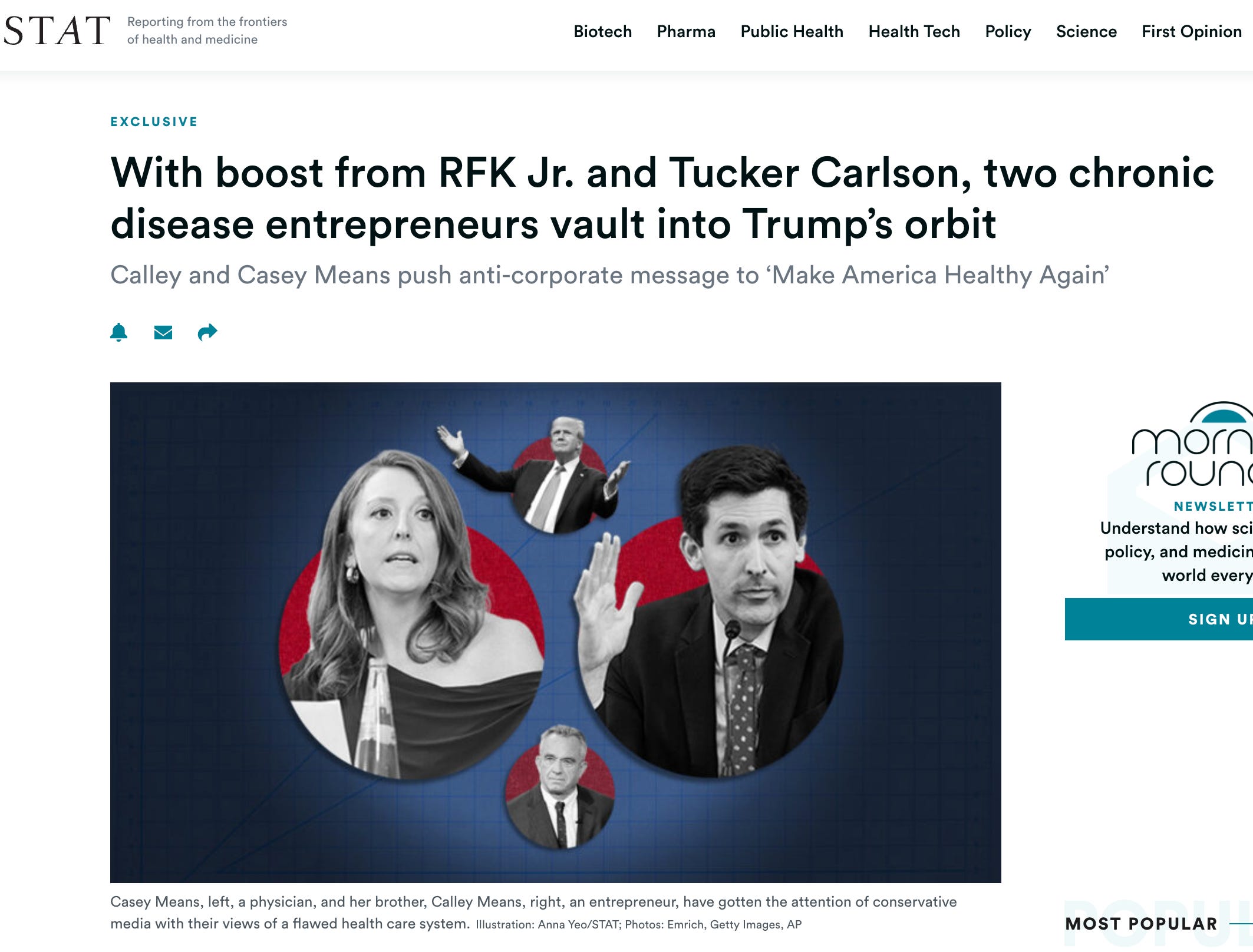The intersection between MAHA and the “Truemed” organization has been detailed in essays by STAT news and Axios.