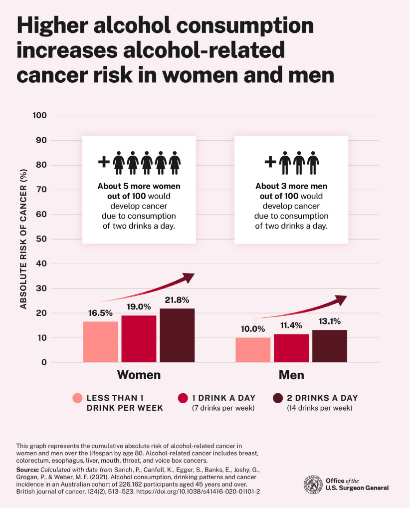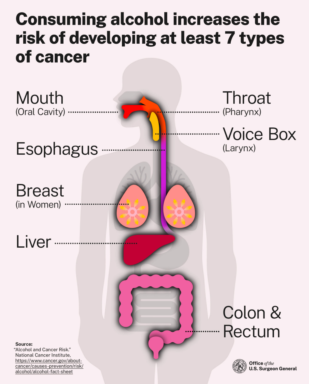 The Surgeon General put out advice saying that even moderate drinking is linked to a series of cancers. He says at least 7 cancers are implicated.