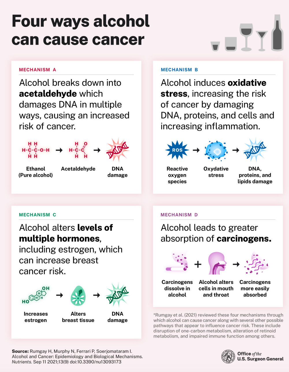 The surgeon general has this to say to about how alcohol causes cancer. I find it unpersuasive. Let’s consider why.