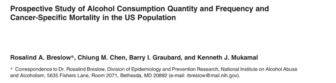 A meta-analysis is like a juicer, it only tastes as good as what you put in. This study takes data from many nations, standardizes alcohol consumption and standardizes endpoints. But what is the quality of the underlying data? I decided to select one, large, recent US based study to provide a litmus test. I asked a scientist who runs my epidemiology laboratory at UCSF to send me a randomly chosen, recent, US based study, just as a litmus test. She sent this.