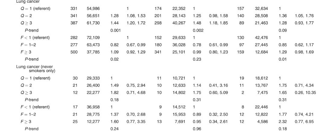 - They find links to cancer mortality. For example, smoking is linked to lung cancer. in the total cohort, but when they restrict to never smokers, the effect vanishes.