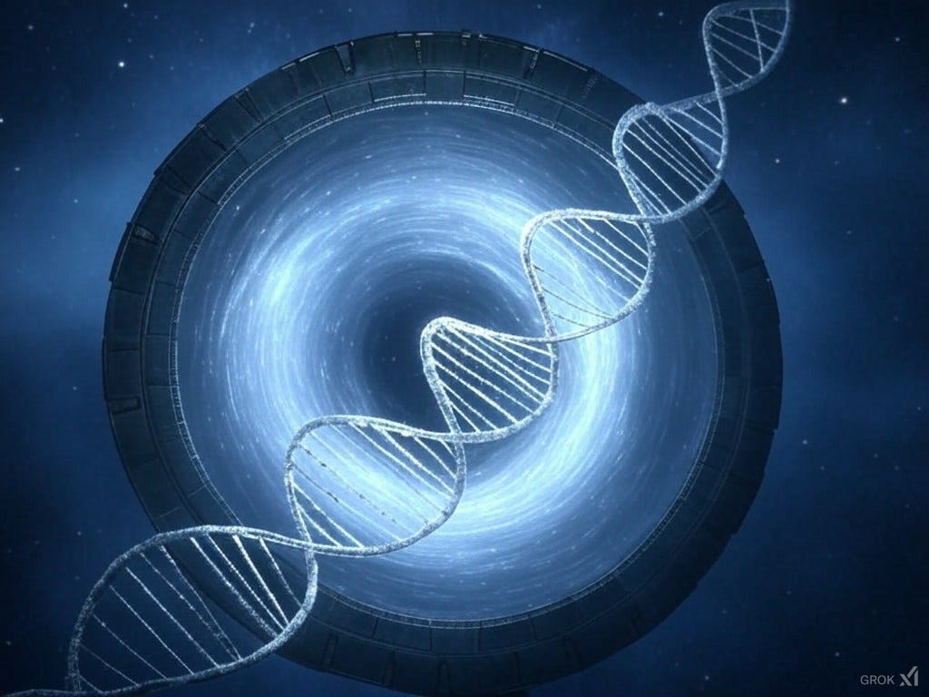 Yes, I know that is actually Grok drawing an assembled DNA strand and a “Stargate”. I tried and tried, but Grok just could not understand what mRNA structure looks like, and does not know the difference between DNA and mRNA. Which tells you something about “Artificial Intelligence.”