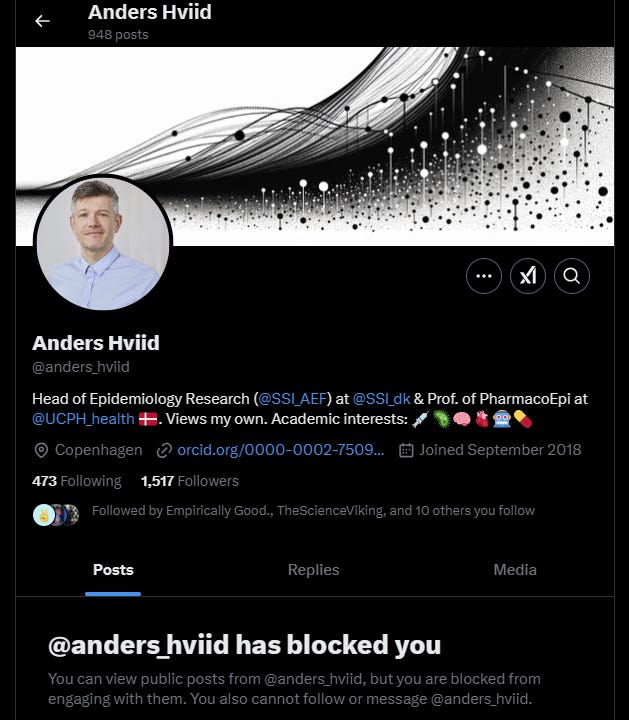 This is why people like Danish Professor Anders Hviid who has published papers showing vaccines don’t cause autism (and chose to block me instead of answering questions regarding the critical flaws in his studies) were completely silent after this paper was published. He should be acknowledging he was wrong or pointing out the errors in the study. Instead, he is silent. Is that how science works?