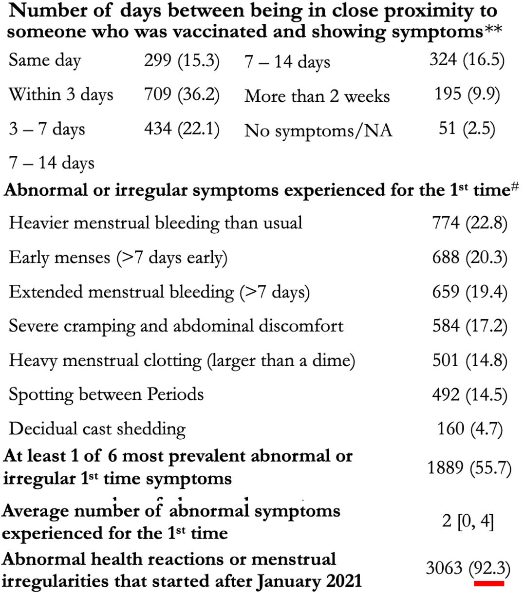 By far, the most common symptom of shedding is unusual and disrupted menstrual bleeding (which is also the most common COVID vaccine injury). This in turn, was the first thing that alerted me to the inconceivable possibility the vaccines could shed, as I quickly received many similar reports of highly unusual menstrual bleeding, which appeared to be due to exposure to someone who was vaccinated.