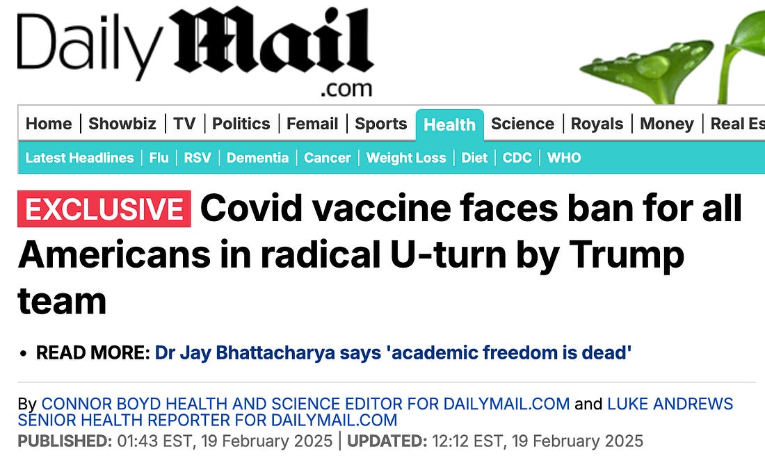 There are signs that the tide is turning on this topic, including this recent article from the Daily Mail (UK). Together with other physicians, I called for these COVID mRNA “vaccine” products to be withdrawn from the US market over two years ago in a press conference filmed at Del Bigtree’s Highwire studio. It appears that this opinion is gaining traction all over the world.