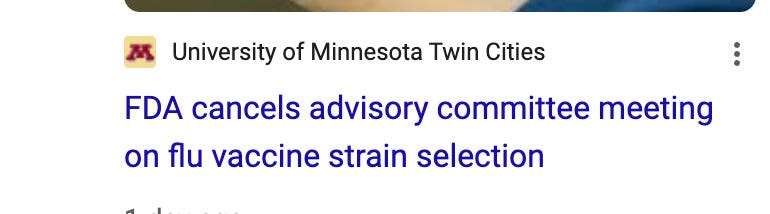 #1 The trees: FDA delays a meeting to find US expert consensus on flu vaccine strains.