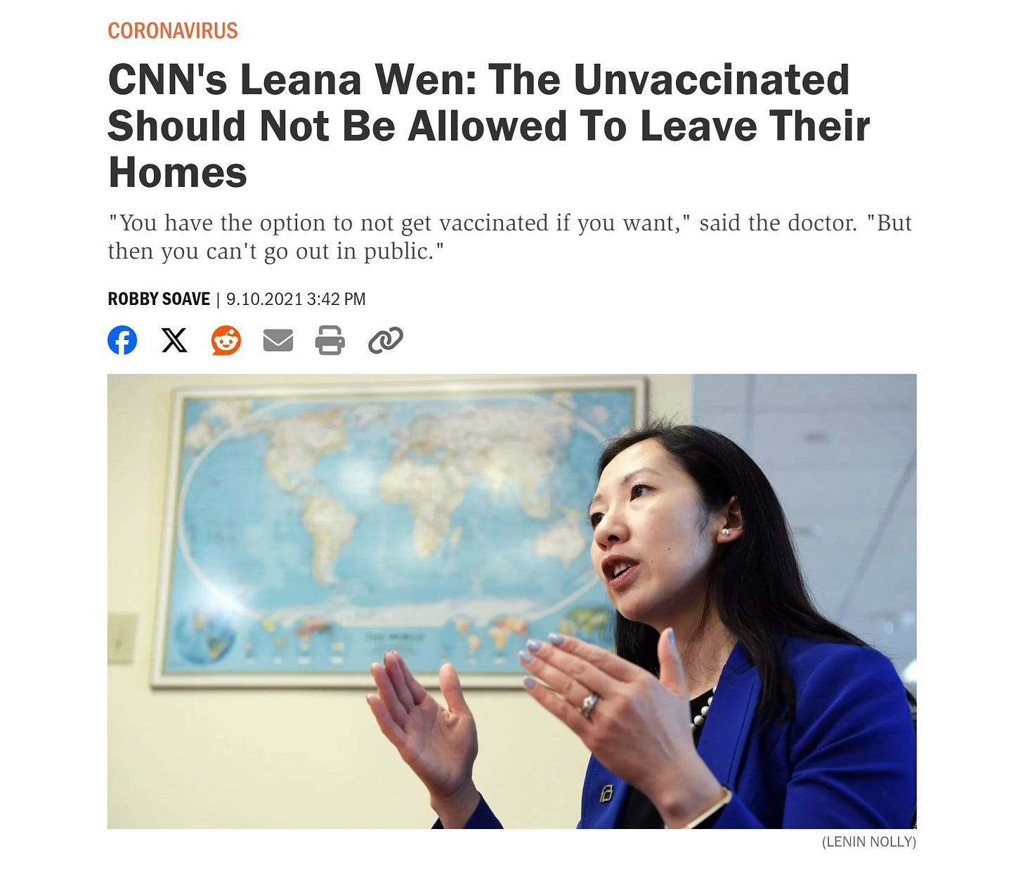Wen was also an advocate of draconian lockdowns. She said the only ticket out of social restrictions was to get jabbed with mRNA shots. Kind of like a “social credit score,” amirite?