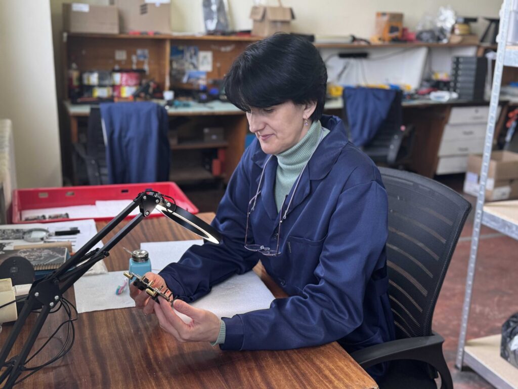 - Tetiana at the electronic warfare factory. Photo: Ian Birrell.