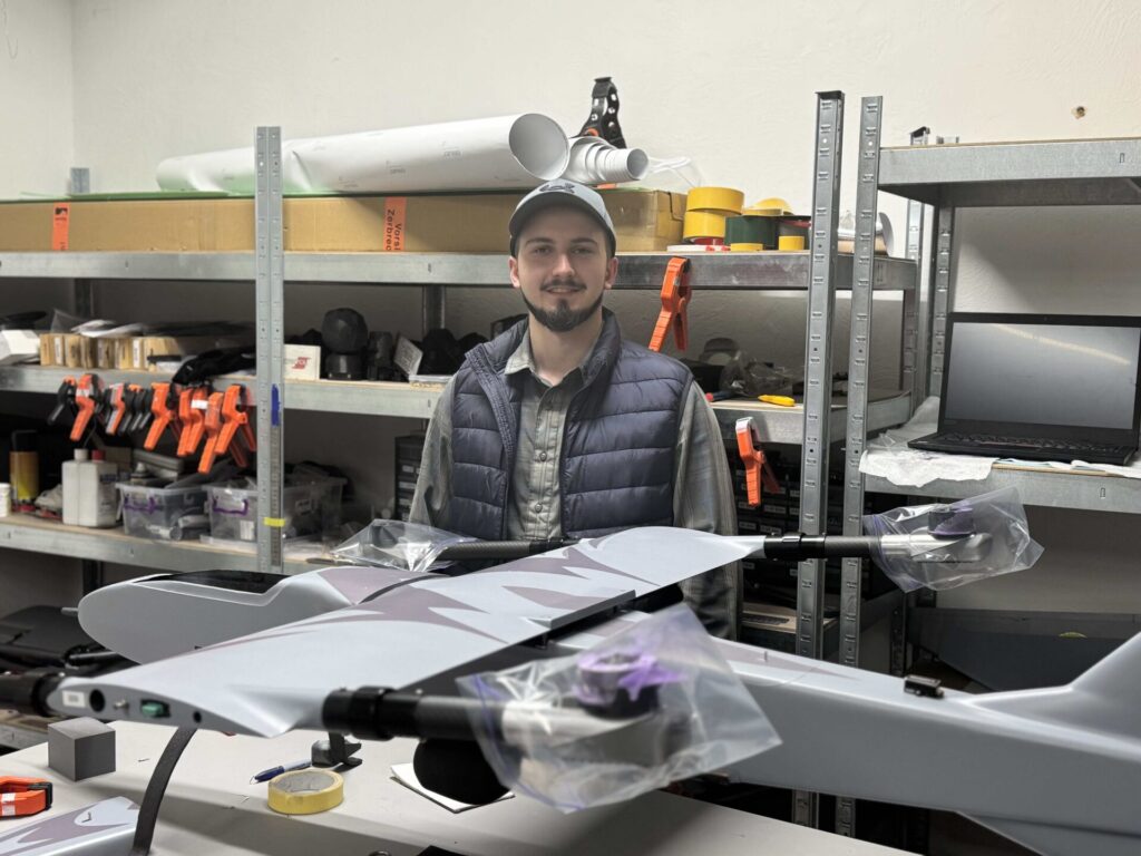 - Bohdan with a Buntar 3 drone which can cost up to $100,000. Photo: Ian Birrell.