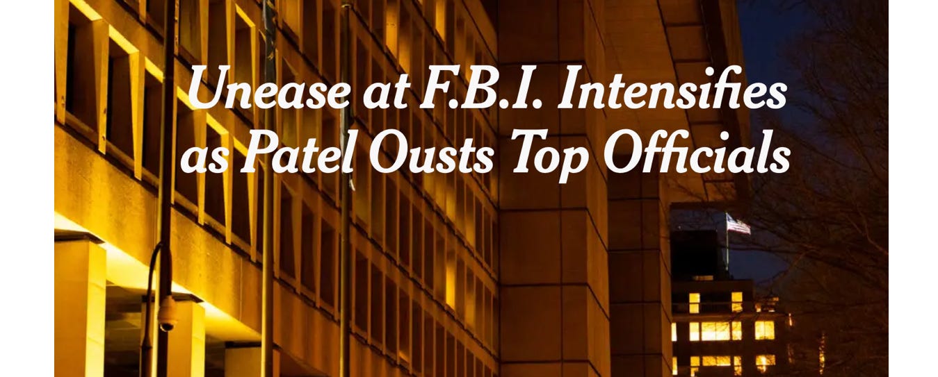 Like a J6 tourist waiting to get the call, the FBI is feeling uneasy these days. Yesterday, the New York Times reported the story below the headline, “Unease at F.B.I. Intensifies as Patel Ousts Top Officials.” The sub-headline explained, “Senior executives are being pushed out and director Patel is more freely using polygraph tests to tamp down on news leaks.”