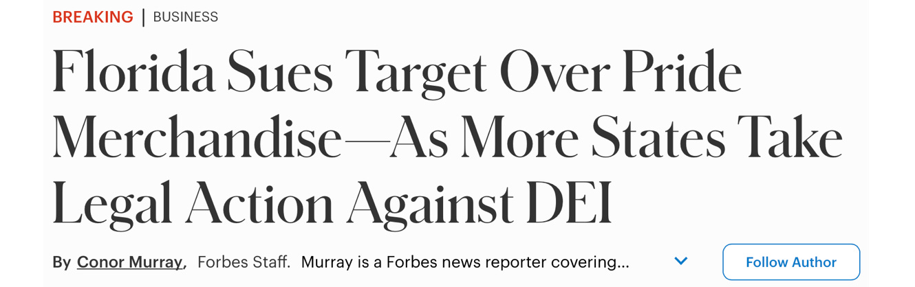 Belying the sub-headline’s promise, there was not a single quote from a corporate sponsor that cited “retribution.” The article did report that one of the few remaining corporate sponsors, Target, chipped in anyway but asked not to be named as a sponsor. Back in the closet.