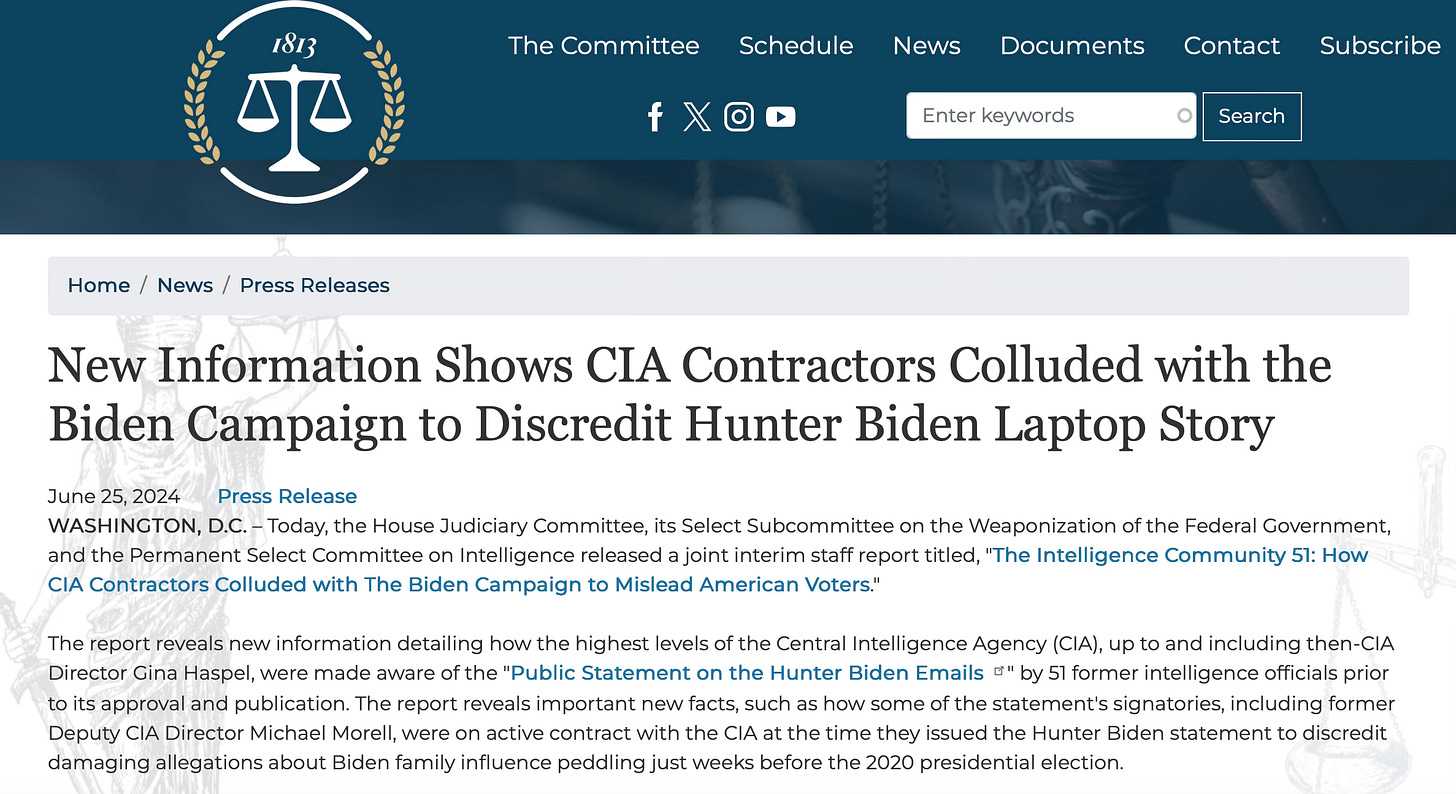 If you need a smoking gun, look no further than the FBI and the CIA colluding with the Biden administration to censor the Hunter Biden laptop ahead of the election.