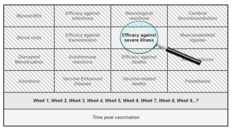 The issue is not whether some degree of vaccine efficacy was observed at specific moments (e.g., see the fascinating example in our preprint of the Bar-On et al. study on the second booster), but rather how such fleeting observations came to shape the broader public narrative. Isolated data points were elevated and decontextualized, while critical considerations—such as (a) waning immunity, (b) the lack of demonstrated mortality benefit, (c) vaccine breakthrough infections leading to hospitalization or death, and (d) an increasingly robust body of evidence on adverse effects—were systematically sidelined (Figure 1).