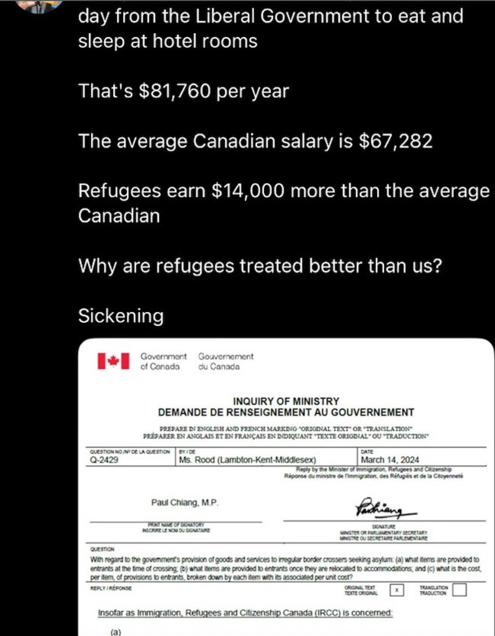 This month we started soliciting seniors from the most degraded parts of the world, and of course we now offer a full ride for migrant LGBTQ. Multiply $10 million of cancer treatment times 500,000 people. I do not exaggerate. We imported 800,000 in the first quarter of 2025. We pay each of them $82,000 a year, while the mean salary in Canada is $67,000.