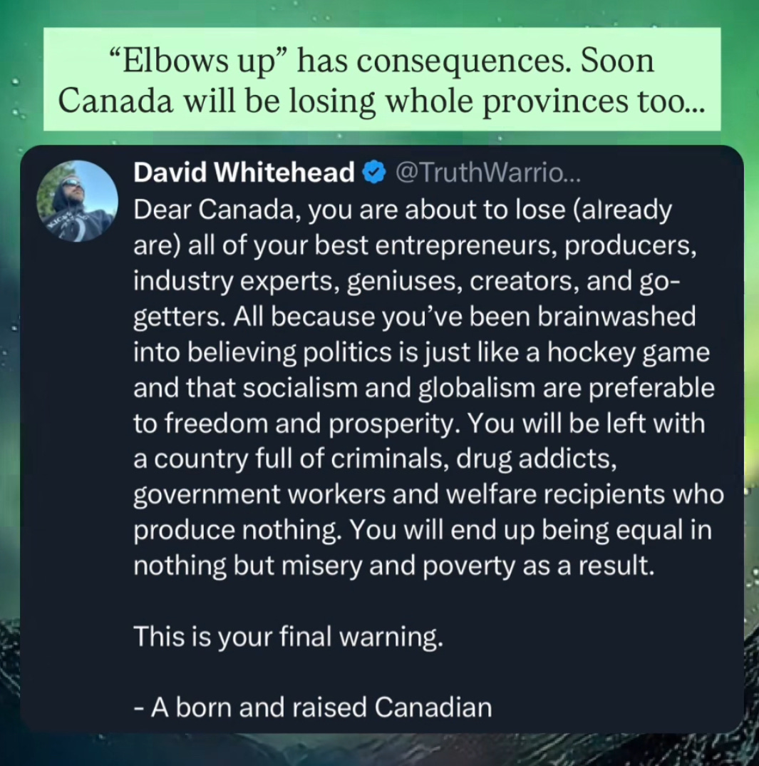 Canada is experiencing the same migrant rape, murder, mayhem, homelessness, violence as Europe, coupled with a decades-long green shut down of the economy. Kids are in despair about jobs and housing.