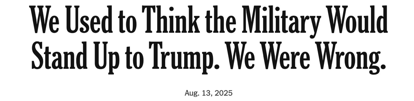 The authors complained at length about Trump’s national guard deployments, especially in LA, casting them as terrifying encroachments of military force into domestic situations. Only at the op-ed’s tail end, and in passing, did they mention that the Ninth Circuit has upheld the legality of the President’s orders. Oh, that. Just never mind.