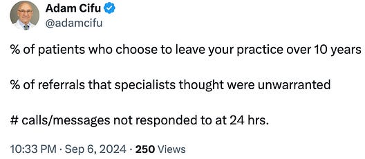 • Alternative incentives to improve efficiency, continuity, and patient satisfaction. Consider Cifu’s Quality Measures:
