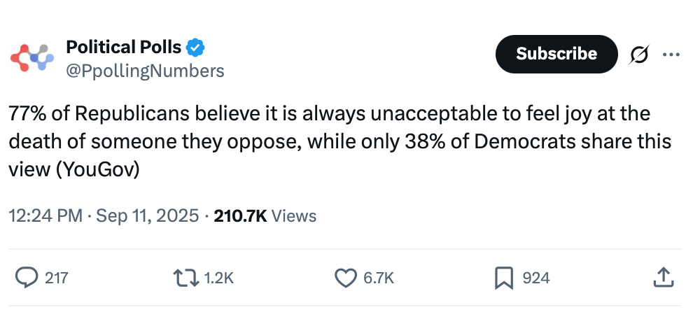 And maybe they thought the rest of America would agree that they should close off their hearts and separate themselves from their empathy to serve the greater political cause that has taken the place of just about everything else in their lives. But they miscalculated how normal people view violent death, especially political assassinations.