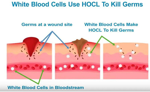 Decades later, scientists found that neutrophils and other tissue-resident phagocytes in mammals naturally produce HOCl. Despite its strength and quick action against pathogens, physiologically produced HOCl has a limited lifespan- which is a good thing. As a key component of the innate immune system, it is necessary to downregulate it once the job is done.