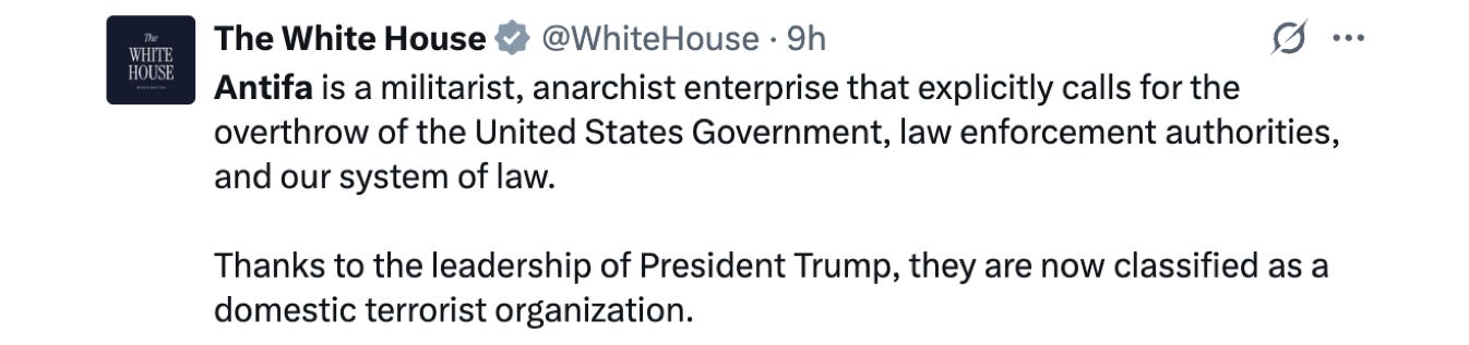 Yesterday, CNN ran a story simply headlined, “Trump signs order designating Antifa a terrorist organization.” It was another move the President teased last week, and another small escalation in the civilizational war of self-defense.
